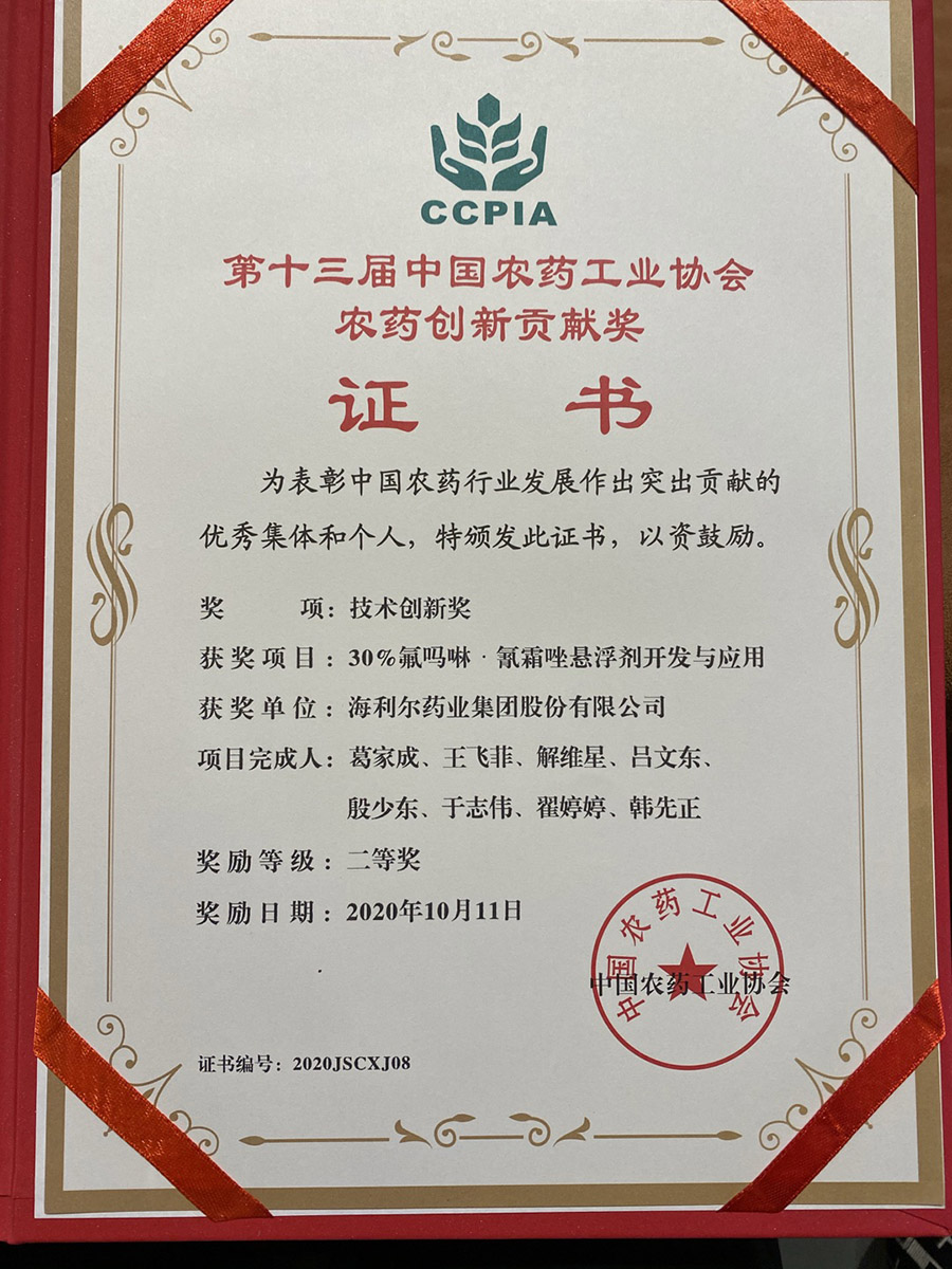 10月11日,第十三届中国农药工业协会农药创新贡献奖名单揭晓,华体网页版登录入口股份有限公司荣获技术创新奖二等奖。