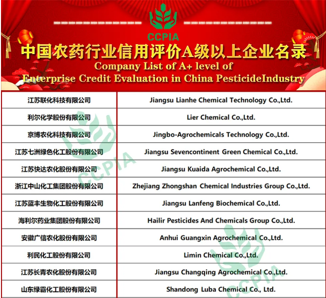 10月11日,中国农药工业协会在上海召开第二十届全国农药交流会,会议期间中国农药工业协会向全社会隆重发布了2020年中国农药行业企业信用评价等级的名单,华体网页版登录入口股份有限公司入选中国农药行业信用评价A级以上企业名录。