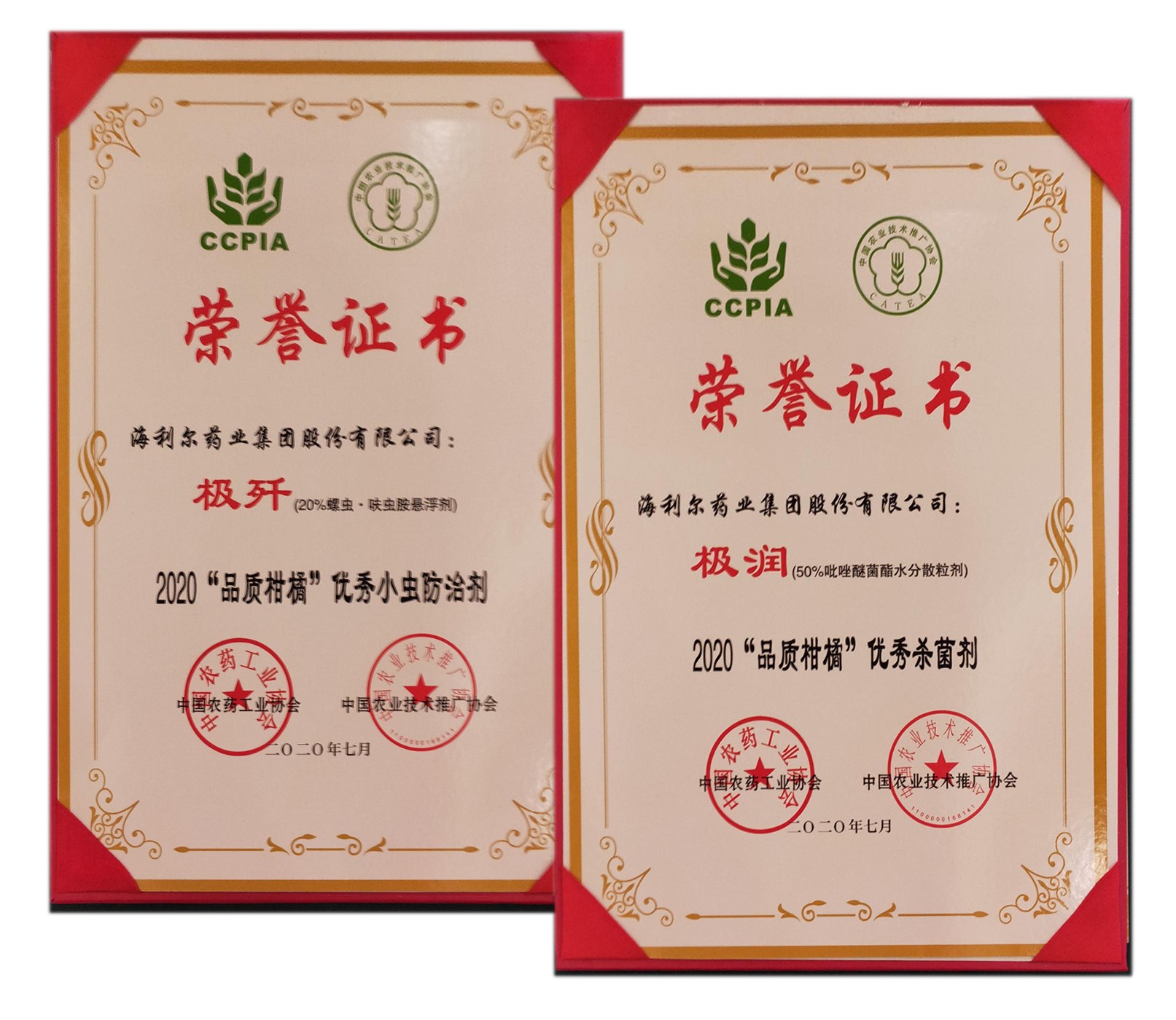由中国农药工业协会联合中国农业技术推广协会共同开展的2020“品质柑橘”优质农资及服务系列评选获奖名单在全国农业技术推广服务中心、中国农药工业协会主办的“第二十七届系列作物解决方案会议之柑橘论坛”上颁布。华体网页版登录入口极润®、极歼®荣获中国农药工业协会颁发的2020 “品质柑橘”优秀杀菌剂奖和2020 “品质柑橘”优秀小虫防治剂奖!