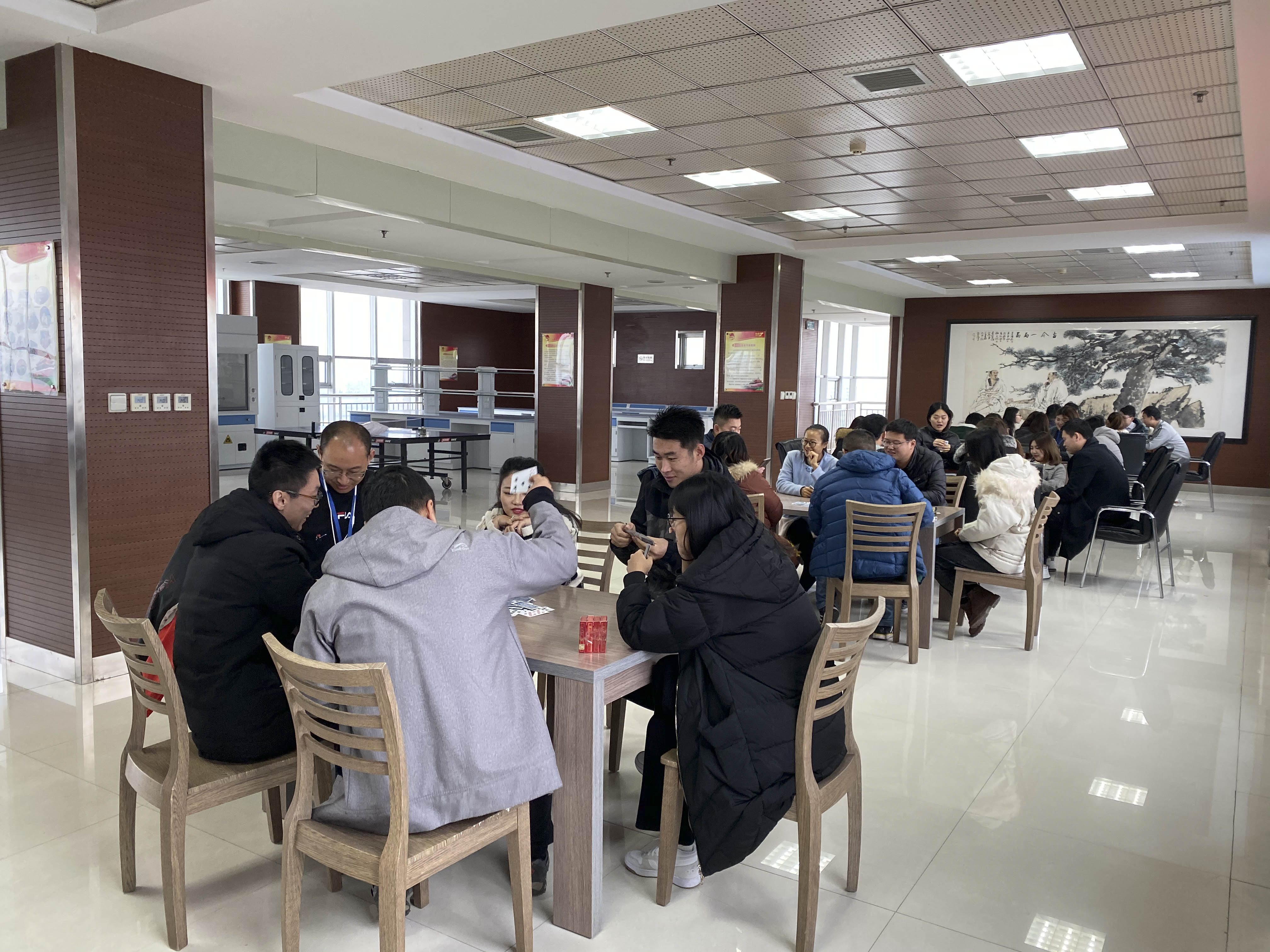 此次比赛由企业文化办主办,凯源祥“烬扫”特别赞助,比赛以两对六人比赛的方式进行,企业文化办宣读比赛规则:每桌实行淘汰赛,三局定输赢,积分制,赢者直接晋级,分别设置冠、亚、季军团队奖以及参与奖。比赛中,参赛选手们斗智斗勇,默契配合,沉着应战。队友之间热烈讨论战略,观众在一旁看的不亦乐乎,献计献策,热情高涨。现场欢声笑语,也有呐喊助威。