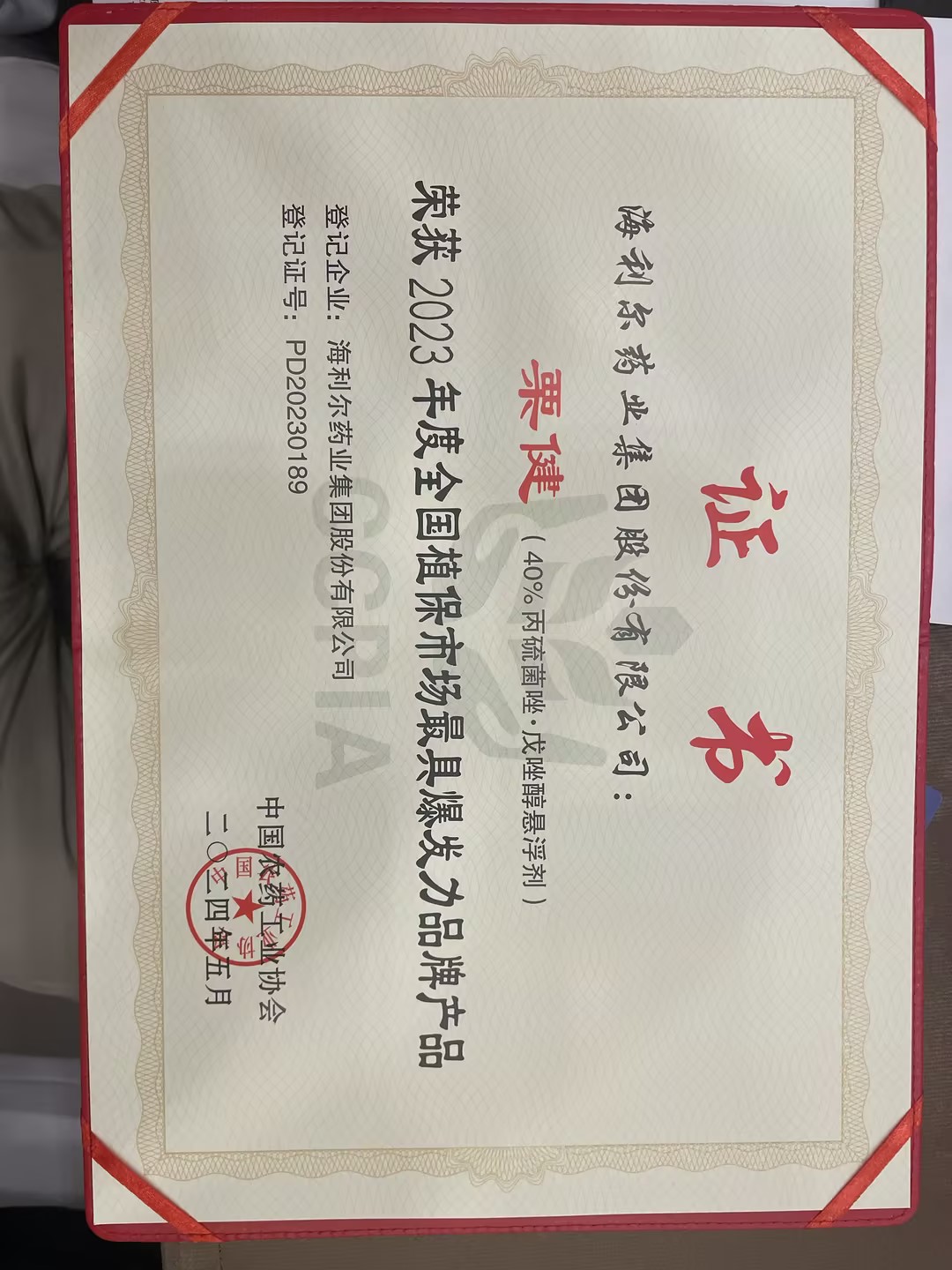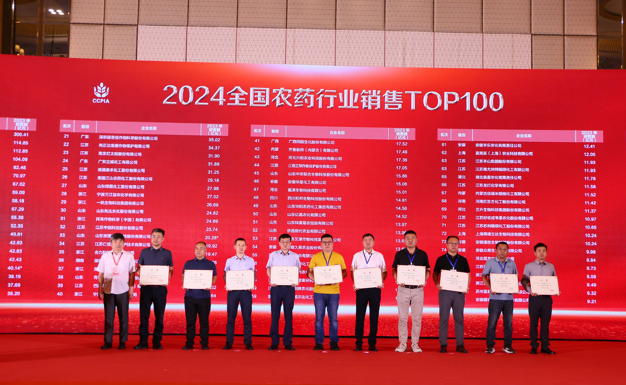 5月21日,会议发布了2024全国农药行业销售TOP100名单、2023年度全国植保市场畅销品牌产品,华体网页版登录入口集团荣获2024全国农药行业销售百强榜第14名,集团产品“栗健”荣获2023年度全国植保市场最具爆发力品牌产品。