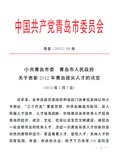 为积极推进人才强市战略,不断优化人才环境,完善人才激励机制,营造“尊重劳动、尊重知识、尊重人才、尊重创造”的良好环境,根据《青岛市专业技术拔尖人才选拔管理办法》规定,按照公开、平等、民主、择优的原则,经单位推荐、专家评审、组织考核、市人才和知识分子工作领导小组审定,市委、市政府授予199名同志“青岛市市第十一批专业技术拔尖人才”称号。华体网页版登录入口副总裁葛大鹏、总裁助理韩先正获此殊荣。