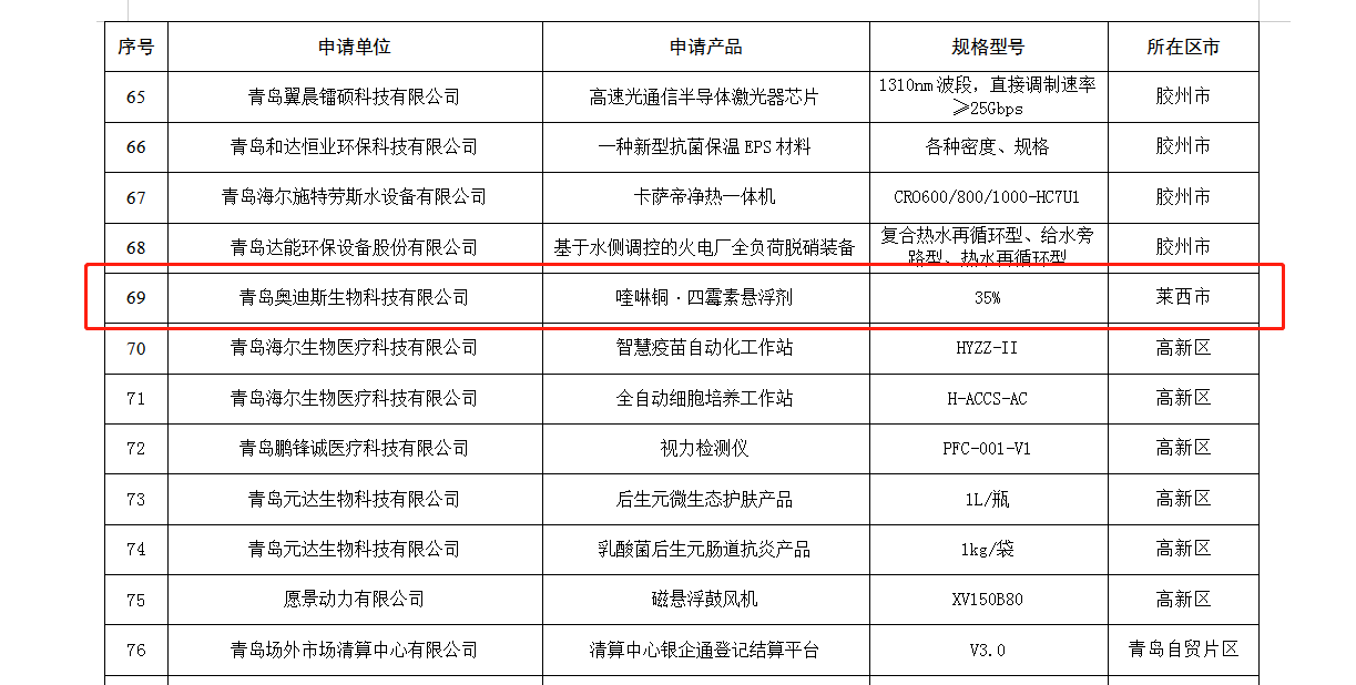 近日,青岛市工业和信息化局公布了青岛市创新产品推荐目录(2023年度第一批)名单,华体网页版登录入口子公司奥迪斯生物生产的35%喹啉铜·四霉素悬浮剂(阿尔达)产品成功入选。