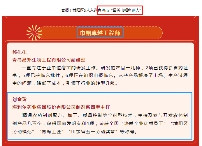 刘金玲作为广大海利尔女员工的优秀代表,获评青岛市“最美巾帼科创人”——巾帼卓越工程师,当之无愧。