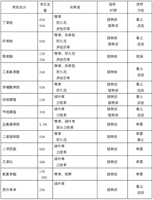 湘赣地区晚稻在封闭用药时,气温高、杂草出土快、封闭不及时,部分多年生非种子繁殖杂草无法封闭,稗草难以封闭防除;茎叶处理时稗草、千金子仿效差,常用药剂存在拮抗问题,水稻易发生药害。