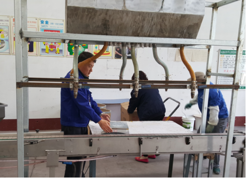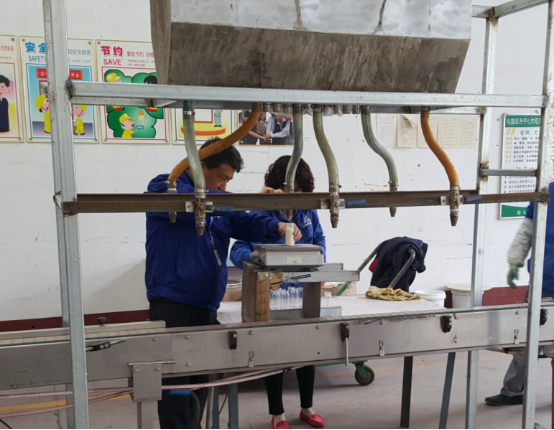 奥迪斯工厂颗粒剂生产任务重,重点产品、战略产品瓶装品规的颗粒剂全部都是传统手工挖料,效率很低,而且需要多工序才能完成产品的生产(挖料、拧盖、旋盖、贴标、喷防伪)生产效率根本没法达到市场销售的需求,赵厂长与苏厂长针对此项工作专门进行讨论研究,如何进行效率提升?要用设备代替传统手工,经研究确定制作半自动颗粒灌装机,最终确定方案由苏厂长亲自现场跟进加工实施:
