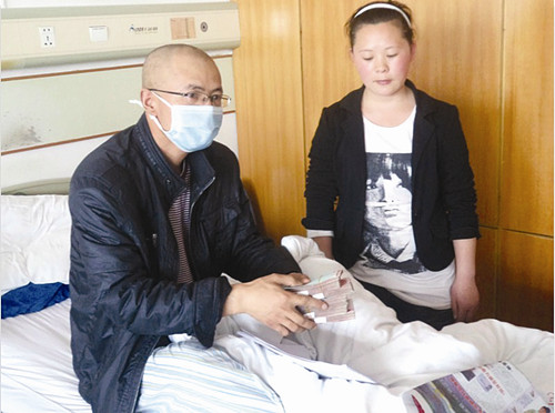“如果这100元钱能够延长我亲爱的同事一秒钟的生命,那也是非常值得的……”读着同事们写在纸上的祝福话,身患急性白血病的于昆眼泪不停地在眼眶里打转。日前,青岛华体网页版登录入口股份有限公司工作人员将1500余名职工自发捐献的6万余元爱心款送到了职工于昆的手中(上图),帮助他积极治疗。